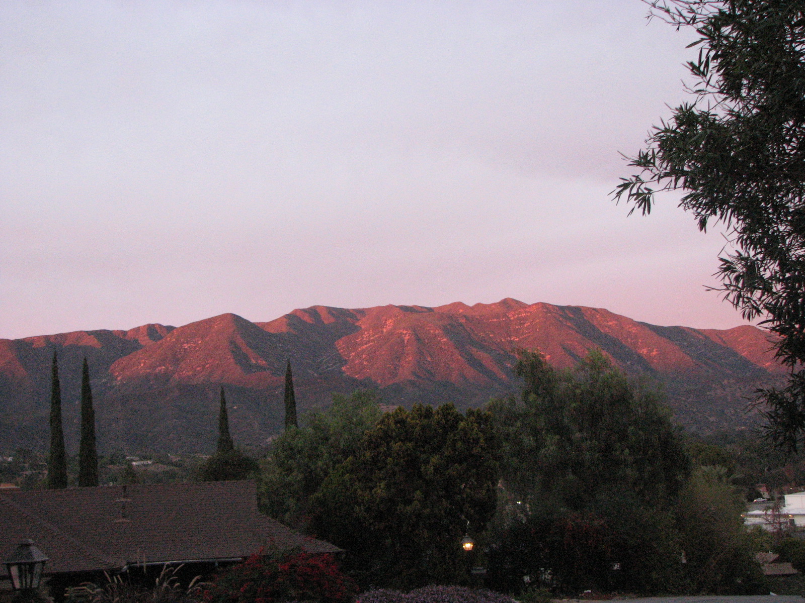 And the view out of our front windows towards the Los Padres National Forest mountains (this view is Ojai's "Pink Moment" as the sun is setting)...